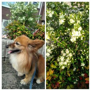 散歩の途中で見つけました🐕 初めて見ました💚白くてふわふわして綿 のようです ☁️ ✨銀香梅✨(ギンコウバイ) 四国の方から株わけして頂いたようです ☀️陽のあたる場所に植え替えたら 今年初めて咲いたとの事です🌟 銀梅花とも呼ばれます