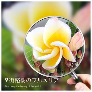 おもしろいアプリを見つけました。 10年以上前にプルメリアイエロー系の名札が付いていた子です。 初めての花が咲いた時、娘がハワイの街路樹のプルメリアだね。と言ったのをきっかけにこの子は街路樹のプルメリアと呼ばれるようになりました。 今年も咲き始めました。