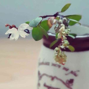 ワイヤープランツの花と実 先日投稿した小さな花で間違いがありました、申し訳ありません😅 ワイヤープランツは夏から秋にかけて小さな薄緑色の花(右上)を咲かせます。花が終わると白い鈴のようなモノが出来て(右下)これが実、中心の黒いモノが種のようです。 花は生育環境が整っていないと咲かないらしいですが、うちは放りっぱなしで毎年咲いてます。