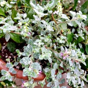 おはようございます*ˊᵕˋ* 昨夜、浅間山が噴火したとか?浅間山近くの方は大丈夫でしょうか?また、台風も次々とやって来て…自然災害の恐ろしさを感じます… そんな中、今日のpicは、オレガノ ‘ハイライト‘。 去年購入して、簡易温室で冬越ししたものです。春にだいぶ伸びていたんですが、伸び方があちこちになって、形が悪かったので一旦根元近くまで切り戻してました。 やっと数日前から花が咲き始めました😃 ケントビューティーよりもずっと花が小さくて、花茎も長いハイライトさん、ケントビューティーさんとは違う可愛さです💕