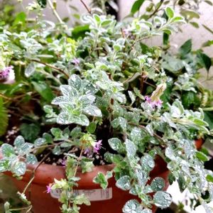 おはようございます☁️ 晴れませんね〜😩 お昼頃から雨降るのかな〜😭 スッキリしない天気の中 ♡オレガノ ハイライト♡の花が 薄ピンクに染まってきました💕 オレガノの中で 花も葉もこの子がお気に入り☺️