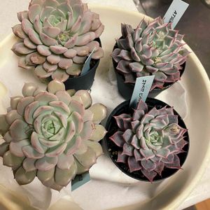 2020年もあと1.3ヶ月弱。 我が家にいる多肉植物たちのリストを計算してみたので、 属やある固まりで紹介していき、 最終的に何体生き残り、何体失敗したのか2020年の締めとして不定期で投稿していくシリーズ。 生死シリーズ2020(でタグ作成) セダム、チレコドン、クラッスラ、カランコエ、センペルビウム、ガステリア、ディッキア、アガベ、アリオカルプス、ティランジア、ガステラロエに続く第12弾は... エケベリア。 この間、二日間エケベリア縛りで投稿したばかりだというのに。 42/48 6体ダメだった。我が家の属別だと1番お亡くなりになっている。 †┏┛墓┗┓† ①アンギキュラータ(寒い時期の雨で成長点を傷めた) ②ロメオルビン(根が無い状態で水やりして腐った。水やりしたか実は覚えていない。傷みが激しかった) ③レインドロップ(梅雨辺りの雨ざらしで成長点などを傷めて復活出来ず) ④ラウイ(梅雨の時期に蒸れ、成長点を傷めた) ⑤美尼王妃晃(梅雨の時期に蒸れ、成長点を傷めた) ⑥恋情(梅雨の時期に蒸れ、成長点を傷めた) ( )内は死因や最後の状態など。 水絡みだね。 今年学んだから来年はもう大丈夫でしょう。 写真は、相府蓮、相生傘、ロメオ、フロリディティ、フランクレイネルト。この間登場させたばかり。しかもその時に撮影した写真を使うという手抜き(*´∇`*)ゞ エケベリアは今の時期になると欲しくなる。 ✂︎----------我が家のエケベリア-------------✂︎ ・はなうらら ・銀明色 ・ロジョー・ビジュー ・クリスマスイブ ・ルビーブラッシュ ・永遠の薔薇 ・氷雪 ・王妃錦司晃 ・紅大和 ・女雛 ・黒爪ザラゴーサ ・相府蓮 ・ブラックナイト ・ざくろ(ミニマ×フランクレイネルト) ・相生傘 ・ピンクルビー ・チワワエンシス ・ロメオ ・ビアント ・ベンバディス 💀アンギキュラータ ・エケベリア フロリディティ ・エケベリア フランクレイネルト 💀ロメオルビン ・ブルーサプライズ 💀エケベリア レインドロップ ・ストロベリーアイス ・ハルビンゲリ ・バイオレットクイーン 💀ラウイ ・メビナ ・※マッコス? ・※ラウリンゼ? ・ルブラ ・モヒカンスペシャル ・ザラゴーサエッジ ・紅化粧 ・ムーンストーン 💀美尼王妃晃 💀恋情 ・ブラックフラッシュ ・ファイアーリップ ・チワワエンシス ・※ハムシー ・マリーンサンセット ・レッドエッジ ・※マッコス ・名称不明、ご近所さんからいただきもの ※はダイソー産