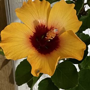 ハイビスカス🌺プチオレンジ 2週間前に買ったハイビスカス 初開花!可愛い嬉しい✨ 今日以降は晴れそうだからもっと咲くかも? 楽しみだな〜
