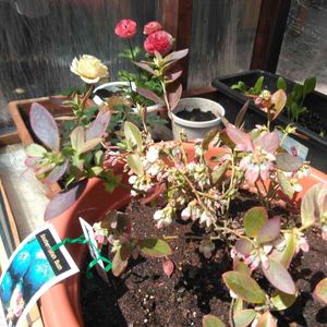 土曜日に購入した。ブルーベリー。『サンシャインブルー』 奥に映るのは ラナンキュラスと薔薇。春はいいですね😊