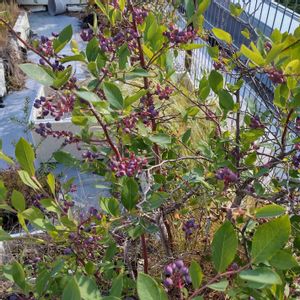 ブルーベリーはレッドアイとハイブッシュの二本。 いずれも10年以上かけて3メートルくらいに。水と有機肥料は欠かせないけど バケツいっぱい収穫できます。
