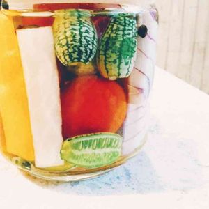 プチキューとビーツとプチトマトのピクルス!ビーツの色素でなんでも赤く染まる😄プチトマトは完熟前にうっかり落としてしまったものなどを利用しています。 料理で余った人参や胡瓜の切れ端なんかもポイポイ放り込んで継ぎ足してたり、下の方のを引っ張り出してかじったり。味にムラができるなんてことは気にしません笑 ピクルス液にはセージ、ローズマリー、イタリアンパセリなどの庭ハーブのほか、一粒のスターアニス(☆単位を一個)だけ入れて、いい感じにまとまってます💪