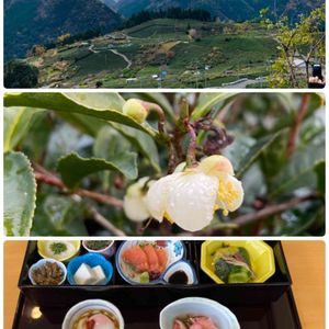 お友達と揖斐天空の茶畑までドライブ お茶の花が咲いていました✨ 健康施設で薬膳料理をいただきました🍃