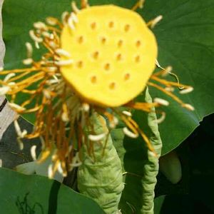 ハスです。花びらが落ちて間もない感じです。