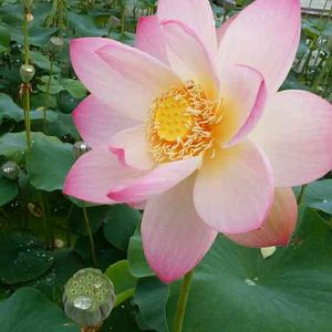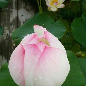 撮り置き写真から。 ヤマサ蒲鉾の蓮池から。 つぼみの蓮グラデーションが綺麗です。 奥に葉影にひっそりと一輪咲いています。