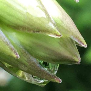 ギボウシの蕾 夜中降った雨☔️が上がり、裏庭のギボウシを見に行ったら、まだ咲いてなかったのですが、蕾の先端の滴💧がとてもきれいだったのです。
