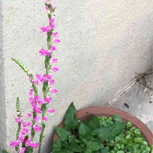 ネジバナ 今年初の開花です。 いつからか我が家にやってきてくれてました。 これは空の鉢に、他には鈴蘭の鉢のど真ん中や、紫陽花の鉢の中にも。松の鉢にもあったような。