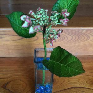 紫陽花 その1 以前投稿した、選定したものの元気が良かったのでラベンダーの鉢へ挿した枝です。 咲きました❗️