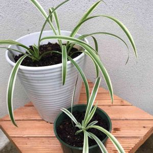 オリヅルラン これも以前投稿のその後です。 水に入れてだいぶ根が出てきたので、鉢に植えました。元気に育ってほしいですね。