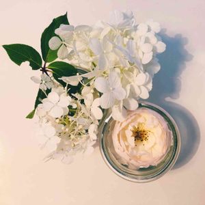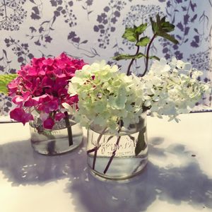 ノリウツギ リトルホイップ(?) と アジサイが今 最盛期です(机の上にもお裾分け)。