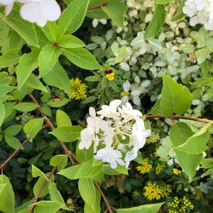 ノリウツギがライムイエローからホワイトに🌿 日陰の庭を明るくしてくれてます✨ 鉢植えですが鉢底から根がでて地まで伸びたようで巨大化してます(*´∀`*)