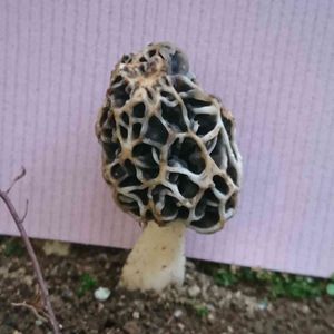 自宅の庭で始めてみるキノコです。 これアミガサタケでしょうか😄 近くで見ると、ゾクッ💦とする形態で。 すぐ側に白雪ケシも咲いていて、居心地良さそうです。