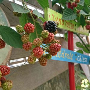 庭に植えてあるブラックベリーです。 何年も育ててますが、毎年ちんちくりんに✂️カットしてしまってたので… 以前はブッシュ型🌳に育てて🍀それは上手くいかなかったナ😄 今回はフェンスを利用し 蔓を長く横に這わせてみました。 すると蔓から新芽が吹き出し花が咲き、思った以上に実が成りました💞