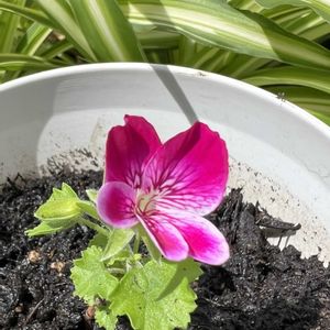 おはようございます⛅️ 今日は29度まで気温が上がる そうです💦まだ5月だと言う のに先が思いやられますね😵 昨年の猛暑で🌟になってしまったお気に入りのペラルゴニウム グランパッソ(スウィートピンク) 折れたのを一つだけ挿し芽しておいたのを忘れていたら ひっそり可愛いお花をつけてました ✧˚₊‧ꕥ💖 こんなおチビさんなのにすごい! 大きくなぁ〜れ(🎀•͈ᴗ•͈)ꕤ