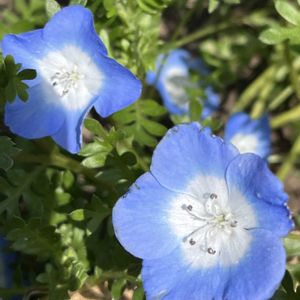 今日の札幌は曇り18度です 道路側に造った4年目の花壇に今年も3株のネモフィラを購入して植えました 大きくなって花がいっぱ い咲きました ①②③④ネモフィラ ⑤去年のネモフィラの溢れ種を7株植え替えました