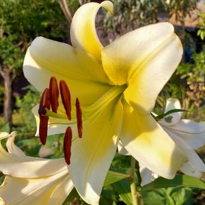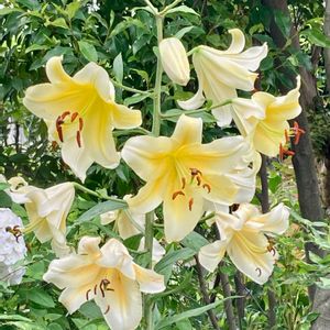 散歩道の途中でカサブランカと思われるお花に出会いました🚶♀️ 暑い中、見事に咲いていました😊 良い香り✨✨✨ 追記 まろさんに教えて頂き、イエローカサブランカと言われるオリエンタルリリー・コンカドールらしい事が分かりました。 🏷️を変えようと思います😊