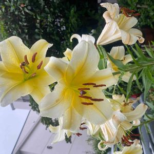 ゴールデンカサブランカ✨ コンカドール ってのが本当の名前らしい、、、✨先ほど庭に出て、開いてるの発見✨ 確かに昨日は蕾けっこう膨らんでた💛