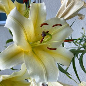 ~オリエンタル リリー~です⚜️ キレイな彩りで咲いています💗 黄色い大輪のユリの花を見ると、 気分がパッと晴れますね💓😉