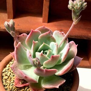 おはようございます(^o^) ここ数日夕立が来て鉢物の水やりをせずに楽しているけど多肉達にお水あげられない💦 明日あたり気温が下がればいいな~😅 今日は夏姿も綺麗な子を 夏前に殺ダニ剤ふって少し汚いけど涼しげなピンクでしょ💕 一日頑張ろうね✨