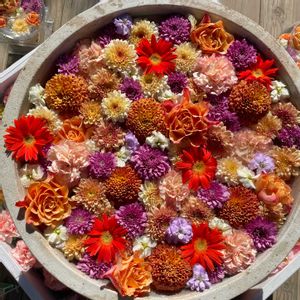 修善寺虹の郷の花手水がイロイロ、たくさんの中の5個を選びました。 こんなにたくさん花手水を見たのは初めてです。 皆さんはどれがお好きですか? 1⃣ 菊の花、ダリア、マリーゴールド他イロイロ 2⃣ 皇帝ダリアと菊 3⃣ ダリア、バラ、キク、マリーゴールドとドーム菊 4⃣ 八重咲きのユリ 5⃣ ピンク系のバラ、ダリア、キク
