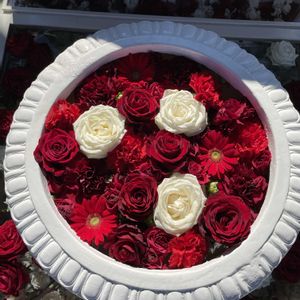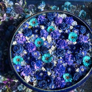 息子が作ったフローティングフラワー❄️ 私がウエストリンギアの選定をしている隙に息子が花をむしり取ってしまいました💦ママと同じ〜🥺と主張する息子に上手く説明できず、大事にお家に飾ろうねって話して一緒に水に浮かべました🥲