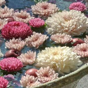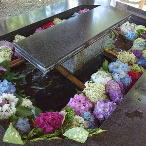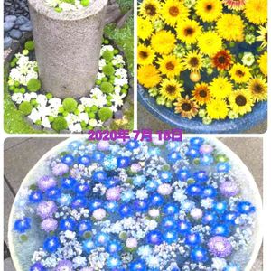行田八幡神社⛩花手水(水琴窟) (7/23) 前回リサーチ不足で見落としてしまった三つ目の花手水(水琴窟)を見ることができました! 浮かべられた花の種類が前と違っていました。どうやら毎朝替えているようです。