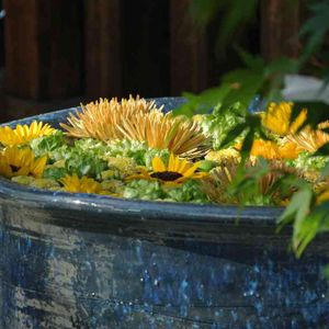花手水🌸 ひまわりとダリアの夏バージョンになっていました。