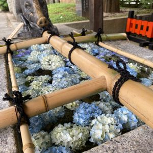 地元の神社へ参拝⛩ 手水舎は紫陽花が満開でした💠✨