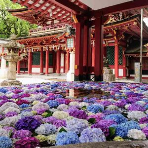 雨引観音の手水舎🐉 紫陽花の花手水💜💖✨