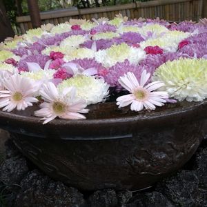 今回は2カ所の花手水を紹介します🌸 前半4 枚のテーマは『秋麗』(高槻市浄誓寺) 秋の空が澄み渡り、穏やかで麗らかですね😊 色鮮やかな花手水をお楽しみください🤗 最後の1枚は、高槻市野見神社の花手水です🌸 愛らしい色合いで、色の濃淡によって こんなにも素敵なバリエーションが生まれのですね🌸
