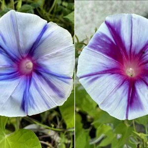 朝顔 曙の虹 こんなに違う花が咲くと面白いです。 知人に種を上げたら下のばかり咲いてたらしくこれじゃない(上)のが欲しかった~と、言われました。 昨日漸く上の色の曙の虹が咲き、やった~~🎵とpic送られて来ました。 毎日違う色使いで面白い。