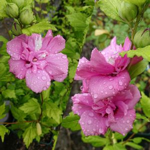 7/25㈭③ まこSさん発信 🏷木曜日は木に咲く花 ふくちゃん発信🏷木曜日は桃色 【〇〇花笠】と【花笠】が名前に付く八重咲きのムクゲと、カタカナ名前のムクゲ。 神代植物公園では大徳寺花笠がまだ蕾でしたので、3年前の平塚花菜ガーデンの写真とコラージュしました。 他のムクゲも、平塚花菜ガーデンや、大船フラワーセンターで3年前に写して、トリトンのみどりのまとめ「アオイ科の花①ムクゲ、芙蓉、タチアオイ等」に載せました🤭 久々に見直したら花菜ガーデンで、先日載せた鳥取花笠に出会ってました😅忘れてしまいますね〜 【花笠】のつく名前のムクゲ ①大徳寺花笠・桃花笠 ②角倉花笠(すみのくらはながさ)・ 耳原花笠 ③赤花笠・光花笠 カタカナ名前のムクゲ ④パエオニフロルス・コントドエイモン シングルレッド・リトルトミー ⑤ドクターウエモト