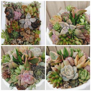 何となくグラデーション ↖️グリーンが効いてるリトープス アルビニカ ↗️メキシココロラータ×千代田の松 ウォーターマークの権化ʷʷ ↙️コスミダトムは秋色に変身中 ↘️ステップストーンの渋カラーの紅葉
