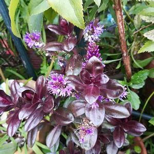 ご近所さんの庭に咲いていたのを📸パチリ "グレースベロニカ"濃厚なブルーの花と銅葉がキレイです。 初夏〜晩秋まで長い期間楽しませてくれますが暖冬のせいかまだまだキレイな姿を見せてくれます‥葉色もチョコレート色変化するようです‥