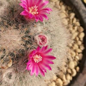葉っぱ鉢~(* ´ ▽ ` *)🍀🎶 アフロヘアの様にもっさりしてます( *´艸`)💕 中心のレウィシアは窮屈そうに見えるけど、寒風が全く当たらないので居心地が良いみたい☺️ 寒い中可愛い花を咲かせてた😆🌼