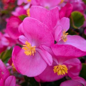 球根ベゴニア シュウカイドウ科 非耐寒性球根 原産地 南米アンデス山系 ↑雄花と↓雌花…🌸🌼 耐寒性がないので秋になると花も終わり、葉も落ちてきます。💦 鉢の土が乾いてから、凍らない程度の無暖房の廊下に置きます。 春になると芽吹いて来ます。🌱🌱🤷♀️ 毎年、picのような花が見事に咲いてくれます。🥰🌸