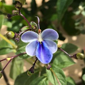 クレロデンドルム ブルーウィング ソルト&ブッシュ 咲いてます。冬室内に入れるのは面倒ですが、それ以外の暖かい気温の季節はずっと咲いてくれるのでとってもイイ!