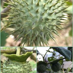 「アメリカ朝鮮アサガオ」の実🍎 このハリセンボンのようなカタチ😓 お花からはかけ離れたイカツイお姿☺️