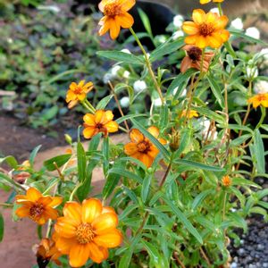 ジニア リネアリス 別名 細葉ヒャクニチソウ 花壇のビオラの咲いていた場所に 苗を買って植えていましたが また花が咲き始めました。:.゚ஐ⋆* ①オレンジ②黄色③白の 3色です 今日は満月 バックムーン🌕 やや曇っていますが 月が見えるといいです♡