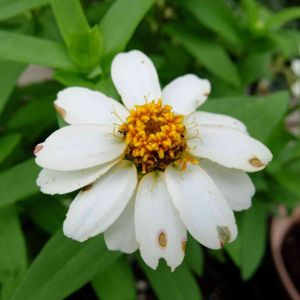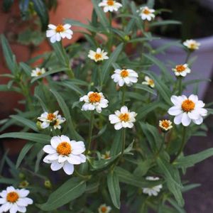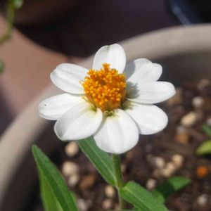ジニア💚リネアリス 毎年苗を買っていましたが、今年は種から育てています 白・黄・オレンジのミックス種から10株育った中、白い子はひと株だけでした…過保護気味に育てられています😅