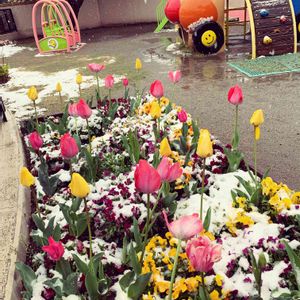 幼稚園の花壇です。 雪です。 寒いです。 みなさん、風邪をひかないように♡