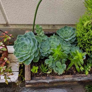 梅雨対策してますが、雨凄っ! 蒸れが怖いですね💦 写真は、息子の幼稚園での七福神✨ 元気だし、形もキレイ😍 我が家のコたちは、日照不足で伸びてる🤨💦