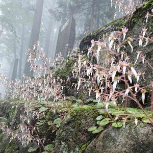 静寂過ぎる霧の中、いつものユキノシタが違って見えました