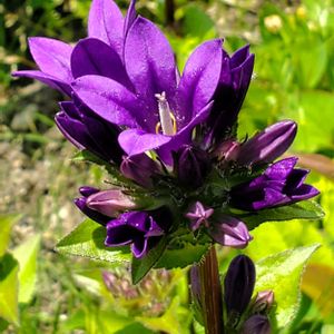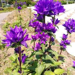 このお花は リンドウザキカンパニュラとか カンパニュラ グロメラータの名前で呼ばれます。 青紫色の綺麗な花がボール状にまとまって咲きます。 ヨーロッパから日本の一部まで広く分布していますが 熊本県の八代で最初に発見されたので 和名では ヤツシロソウ(八代草)と呼ばれます…。 とっても可愛い花姿ですね。🤗 ヨーロッパ 日本原産。 キキョウ科カンパニュラ属の宿根草。