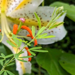 今日、1つめの投稿です。 ☆ 新宿御苑にて 9月19日 ① ショウキズイセン ② 上 ショウキズイセンの蕾 🏷️…に見えた〜シリーズ バナナみたい🍌 下 咲き進んだものは濃いオレンジ色 ♥️🤍💛韓国では、ヒガンバナ属の花を、相思花とも言うそうです。 花と葉を同時に見られないことから、花は葉を思い、葉は花を思う♥️🤍💛 ③ イヌハギ 葉の出方や、花1つ1つが、メドハギに似てると思いました。 でも、全体の形は違いますね😊 ④ イヌハギの花は、おしくらまんじゅう、してますね😊 ⑤ フサフサが目立ってました😲 閉鎖花のようです🔍️ 実になり始めたのかな? 閉鎖花は、多く結実するんだとか😮