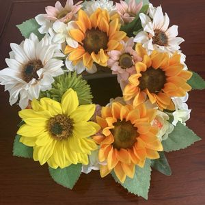 おはようございます😃 近所のお花屋さんの友達はるちゃんが玄関リース作ってくれた💕💕💕💖 ひまわり🌻で夏も元気に💝 今日もよろしくお願いします💞